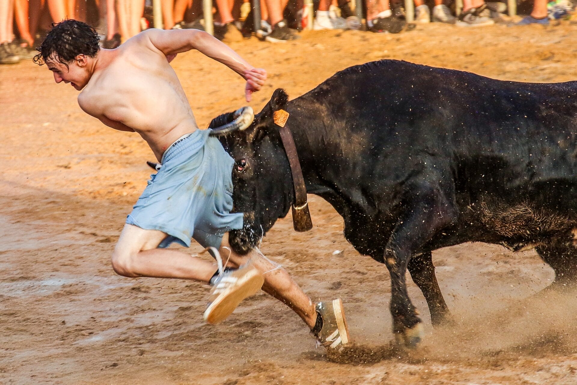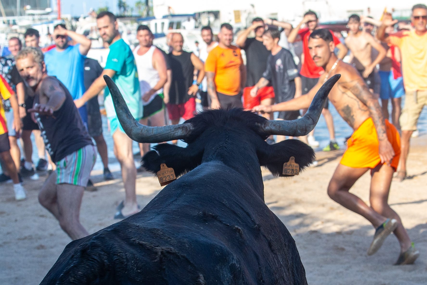 In der Arena selbst übernehmen Hobby-Toreros das Geschehen – junge Männer in Badeshorts, die versuchen, die Stiere in Richtung Hafenbecken zu treiben. Sie springen selbst ins Wasser, rufen die Tiere, reizen sie – und fallen dabei mehr oder weniger gezielt und geschickt selbst über die Kante. Wenn ein Stier zögert, lange widersteht und die improvisierten Toreros auflaufen lässt, kommentiert das Publikum mit Rufen und Applaus – und erklärt das Tier mitunter zum Sieger des Abends. Es ist Theater, Volksfest und Mutprobe zugleich, und die Grenze zwischen Spontaneität und Ritual ist an diesem Abend fließend.